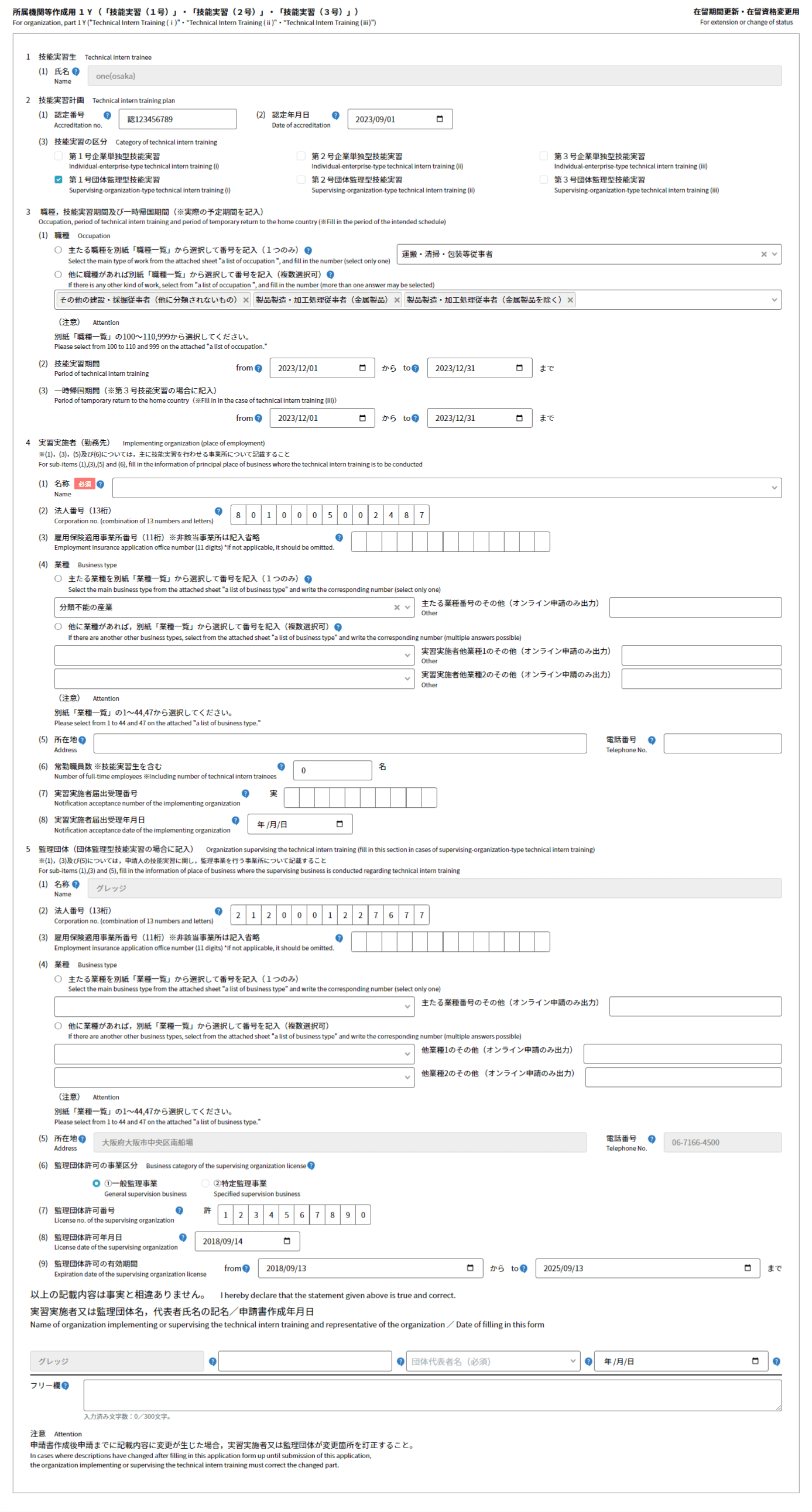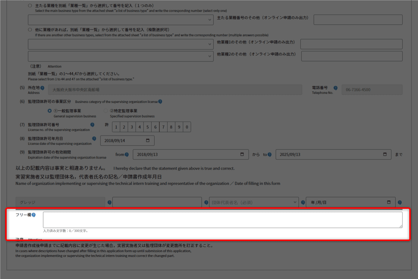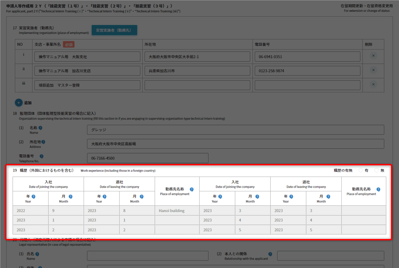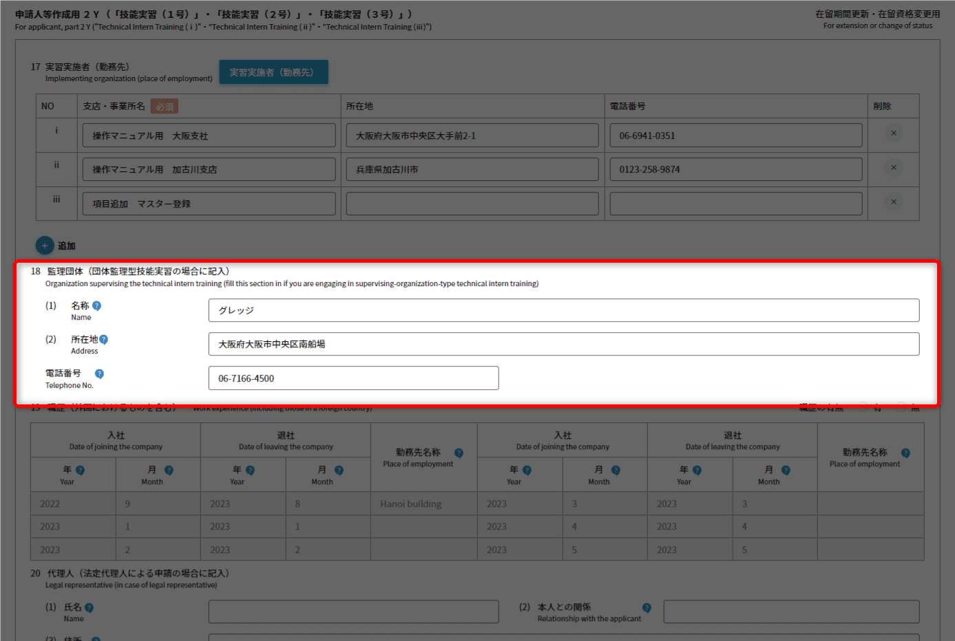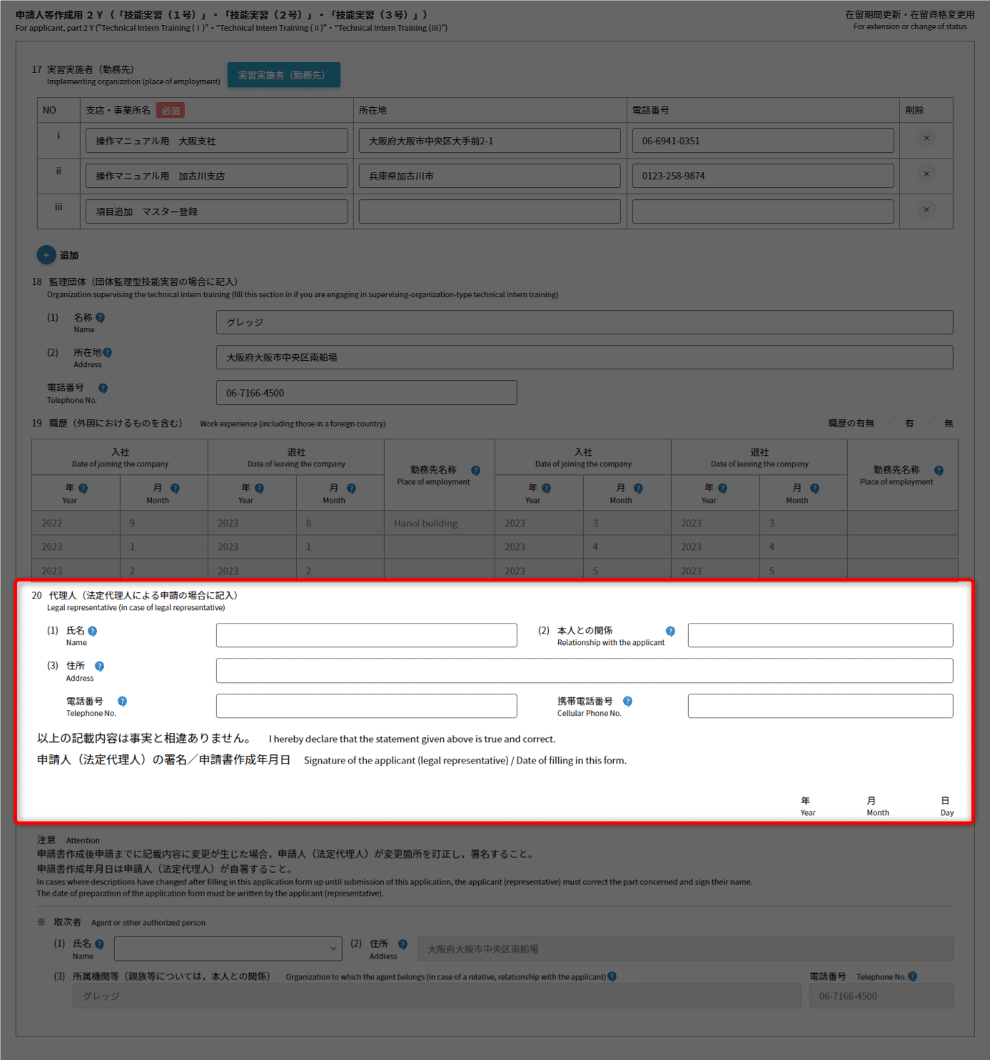 - 主に技能実習を行わせる事業所について、登記通りに入力してください。