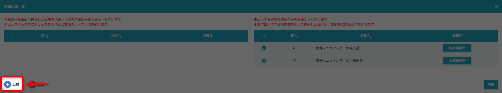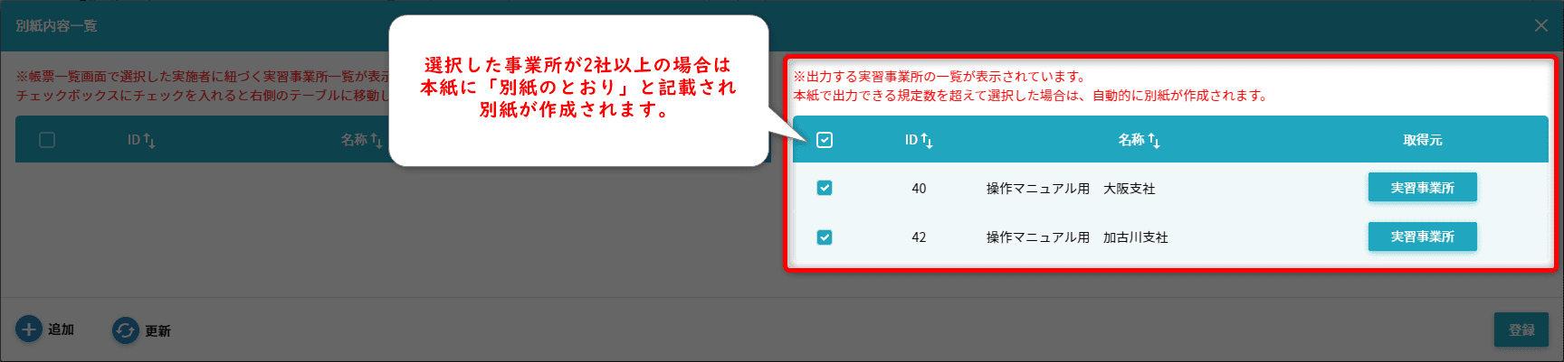 • 「技能を行わせる事業所」が2つ以上選択されている