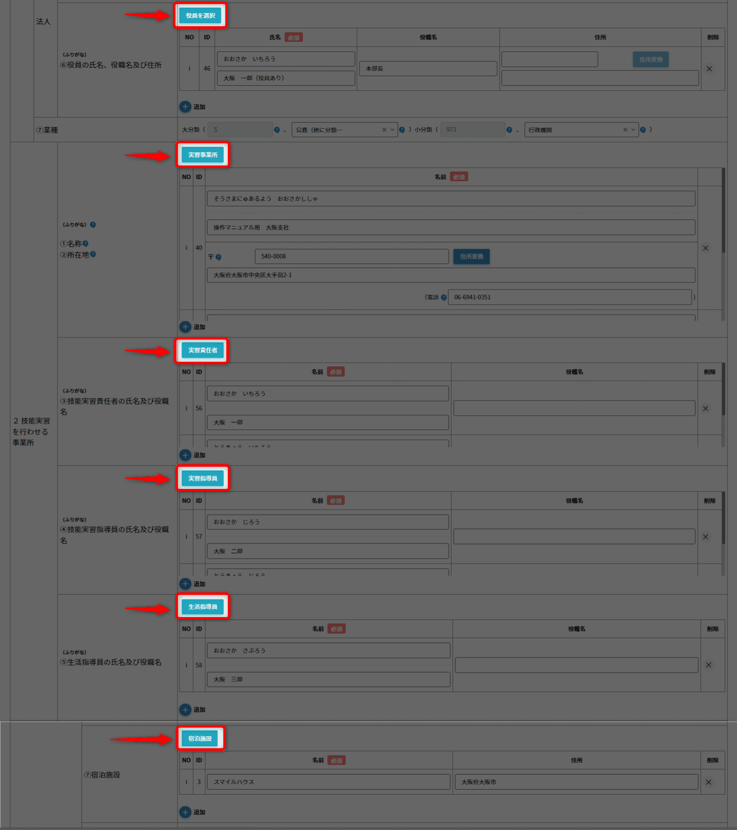 役員」・「技能実習責任者」・「技能実習指導員」・「生活指導員