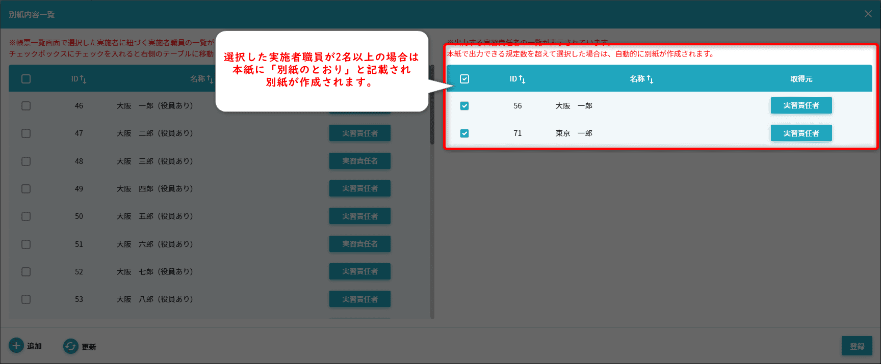 実習生の負担費用を2つ以上入力(帳票画面)